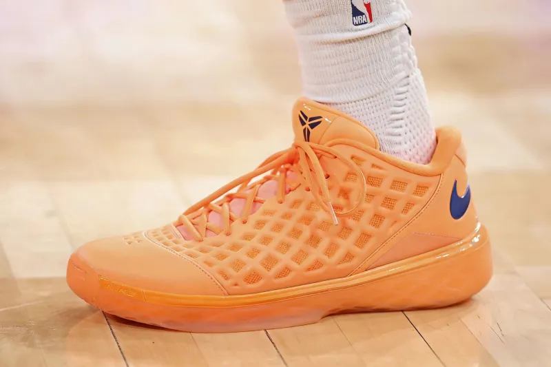 比赛中,尼克斯上脚个人专属尼克斯配色Nike Kobe 3 Protro Low PE。